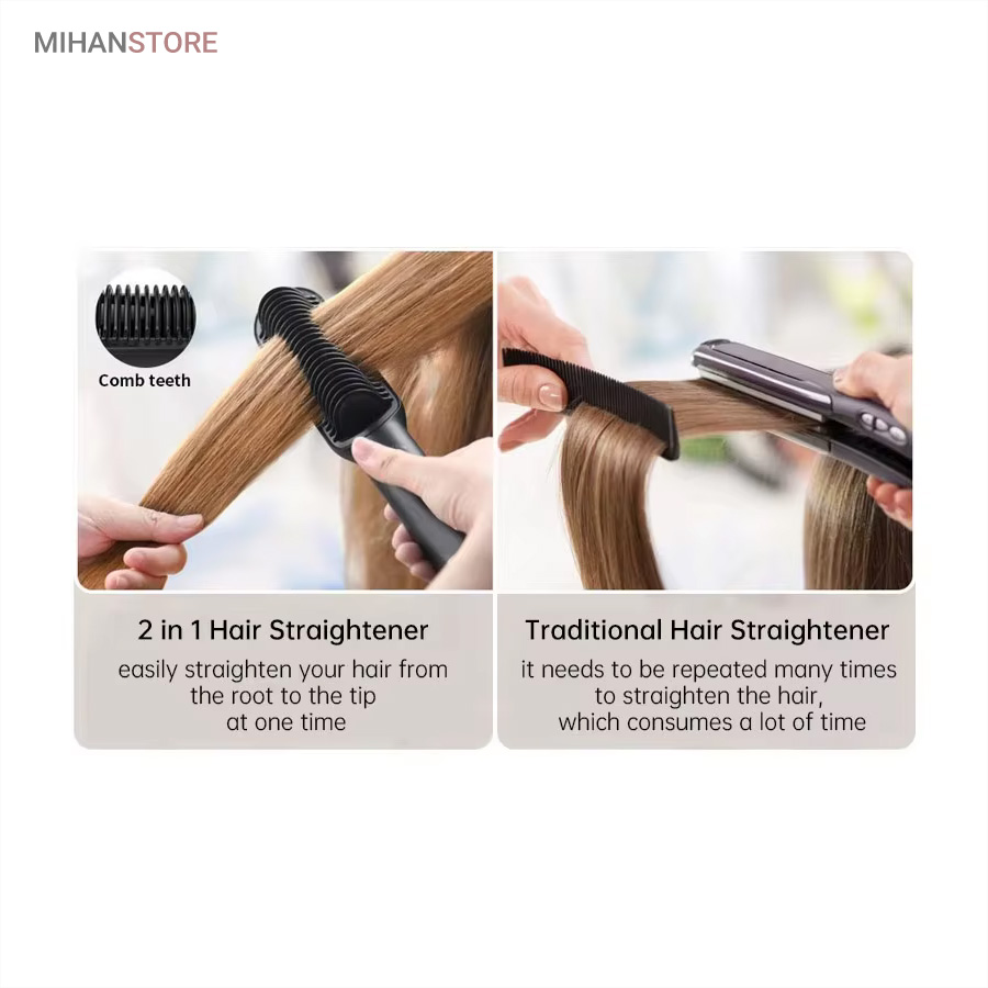 هنگامی که شما تصمیم به استفاده از برس حرارتی گرفته اید بهتر است بدانید که چندین مزایای مختلف را شامل شده اید. مانند: استفاده ی راحت و آسان، وقت گیری کمتر و صافی مو در کوتاه ترین زمان ممکن، صاف شدن مو بی آنکه مو وز کند، کاربرد های متفاوت، حمل آسان و از همه ی این موارد مهم تر، آسیب رسانی کمتر به مو!یکی از بهترین کارکرد های برس حرارتی صاف کننده مو STRAIGHT COMB حداقل آسیبی است که به مو می رساند چرا که مانند برس تنها روی موها کشیده می شود و حرارت درست و صحیحی به موها می دهد که باعث سوختن و آسیب رساندن به مو نخواهد شد.